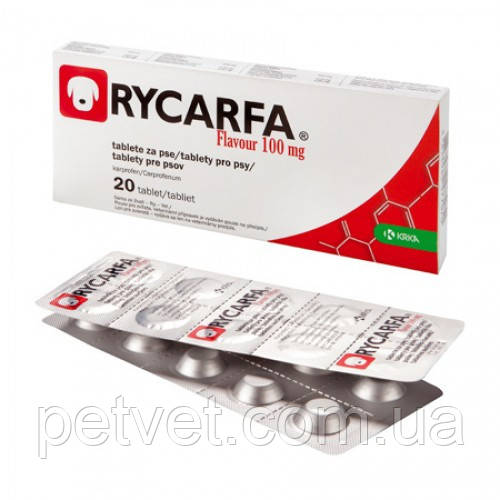 Рікарфа 100 мг,20 табл. є нестероїдним протизапальним препаратом для собак зі смаком м'яса. Основною активною речовиною є карпрофен — 100 мг. Допоміжні речовини: лактози моногідрат, крохмаль кукурудзяний, оксид заліза червоний, оксид заліза чорний, м'ясний ароматизатор, тальк, магнію стеарат. Застосовується для лікування проблем опорно-рухового апарату та дегегенеративного захворювання суглобів у собак. Призначається в післяопераційний період як парентеральна аналгезія.